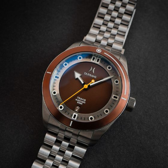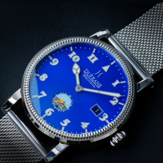 Thermal blued hands, genuine sapphire flat crystal with 6 layers of anti-reflective coating, highly polished stepped bezel, and a unique linen textured dial all make for a truly special piece.