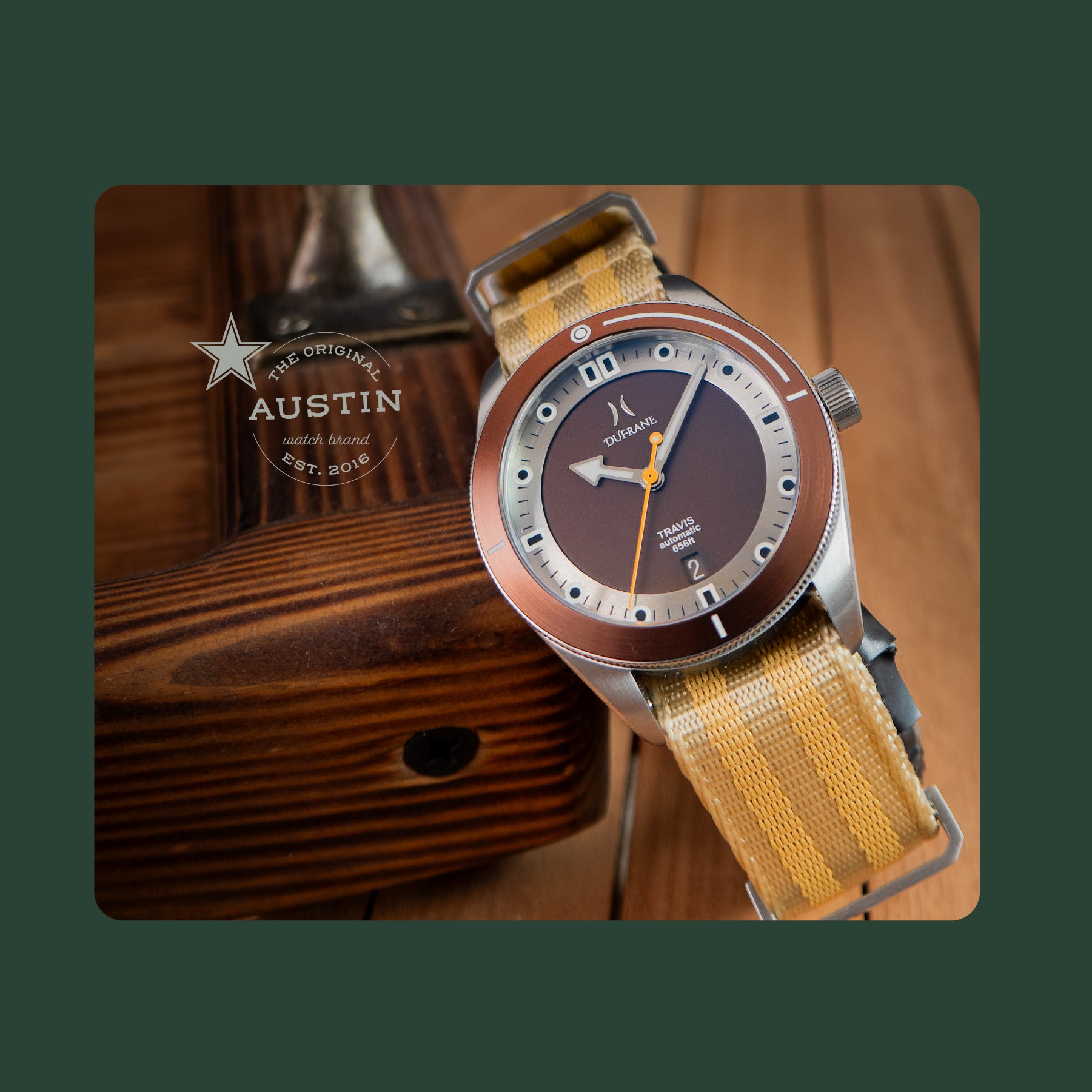 Check out the catalog of my current watches. These include the most common watch styles, like Divers, Field, Pilot, GMT, and Dress watches. Each one has a story, all of which are based on Austin, TX.