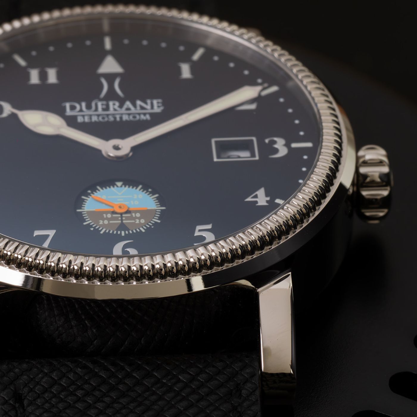 Limited to 300, the Bergstrom MkIV manual wind watch is a fantastic pilot watch. A classic piece that you interact with each morning to wind up for your day. A 41.5mm case has the elegance of a coin-edge bezel, with an open case back to reveal the highly accurate and elaborately decorated Swiss movement.